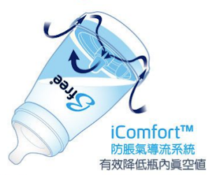以採用獨家專利iComfort防脹氣導流系統,BB 吸吮時,空氣的流動於奶液之上,不會與奶液混合形成氣泡,因此空氣就不會隨著奶液進入 BB 肚內!