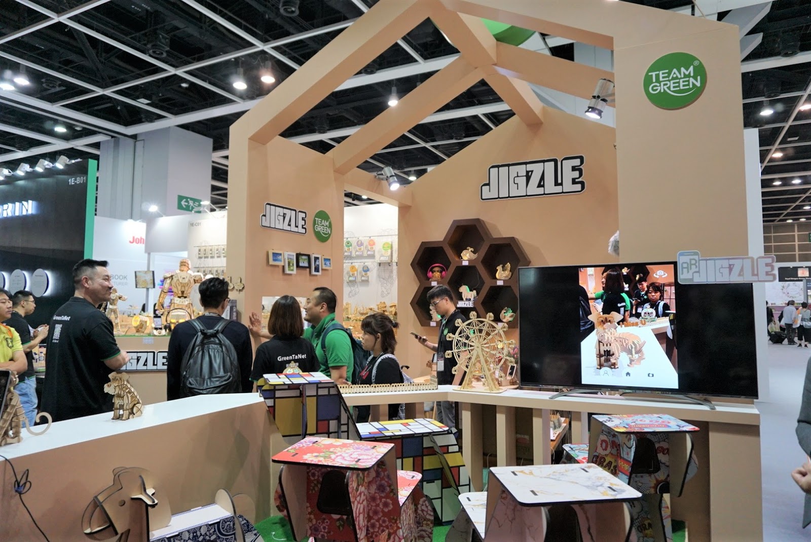說到平板電腦,「卓越廊」中的 TEAM GREEN,有更有趣的展示,明明是靜態的公仔,透過平版電腦即時創作出活動式的實景虛擬,這小狗即時活現眼前,真的非常有創意。