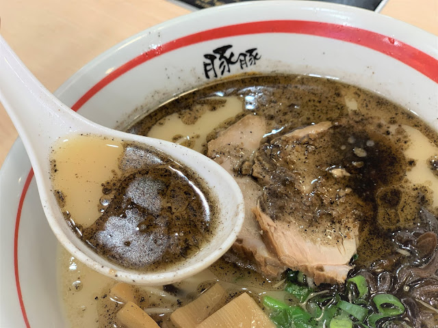 很久沒有吃添加黑麻油的拉麵,黑豚拉麵甫上桌時,濃濃的麻油香氣撲鼻而來;豬骨湯底口感濃稠,聽說這兒的豬骨湯底用上大量豬骨、桶骨及豬手熬製而成,相當鮮味,滿滿的骨膠原,真的忍不住多喝了幾口...... 差點兒喝光呢!