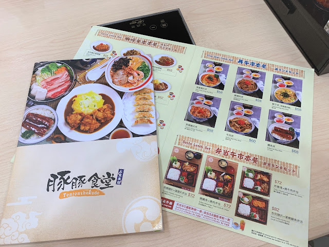 果然是《豚豚食堂》,餐牌上大部分都是以豚肉製作的食品。正值午市時間,我們點選了兩客套餐,分別是黑豚拉麵,吉列豬扒+蒲燒饅魚弁当。