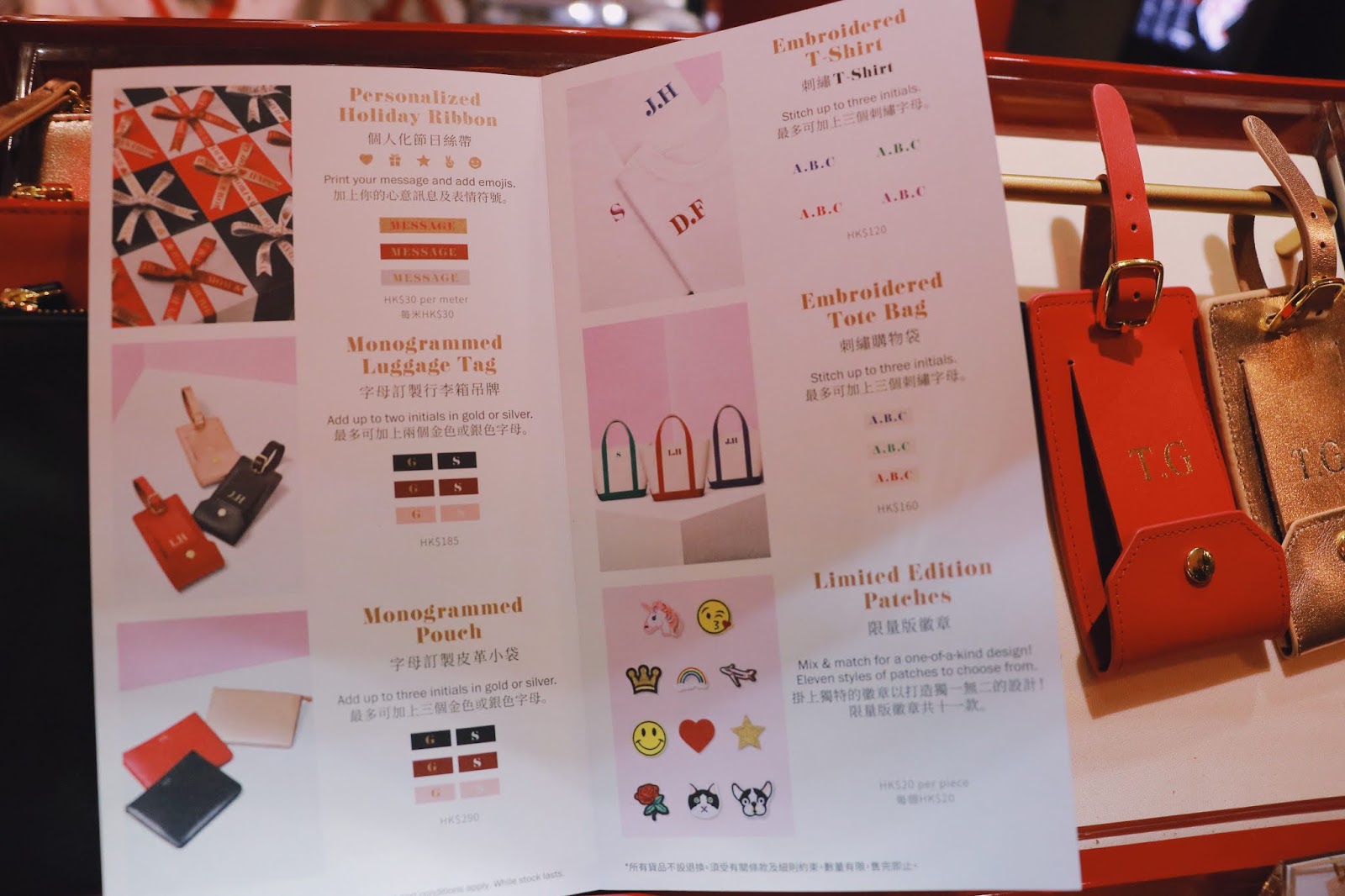 訂製個人化節日絲帶、刺繡購物袋、行李霜吊牌、刺繡T-Shirt、皮革小袋,