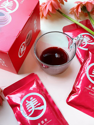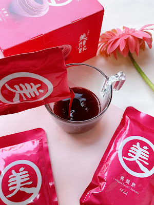 我就習慣於早上起床空肚子喝一包「美顏飲」,微微甜,像紅菜頭汁,味道很天然,也不會有腥味,超滋味的。你也可以在臨瞓前飲、運動後飲,據說是吸收狀態最佳的時刻,能高效補充膠原蛋白呢!以往膠原蛋白粉要沖開或加入飲品內,現在的膠原蛋白一撕開即飲,方便更多啦!