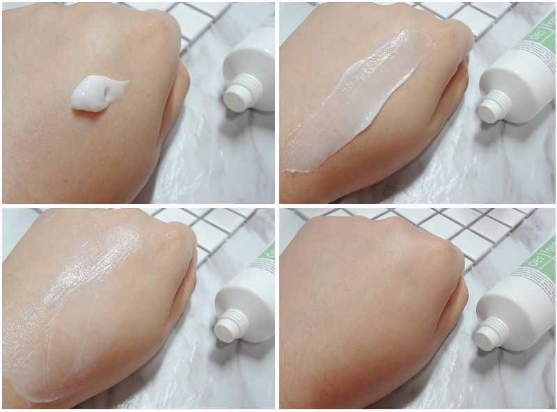 防曬霜清爽易推,質地介乎水狀及乳液狀之間,沒有半點刺鼻的太陽油氣味,塗抹後能與肌膚自然融合,不會於肌膚表面留有白痕。