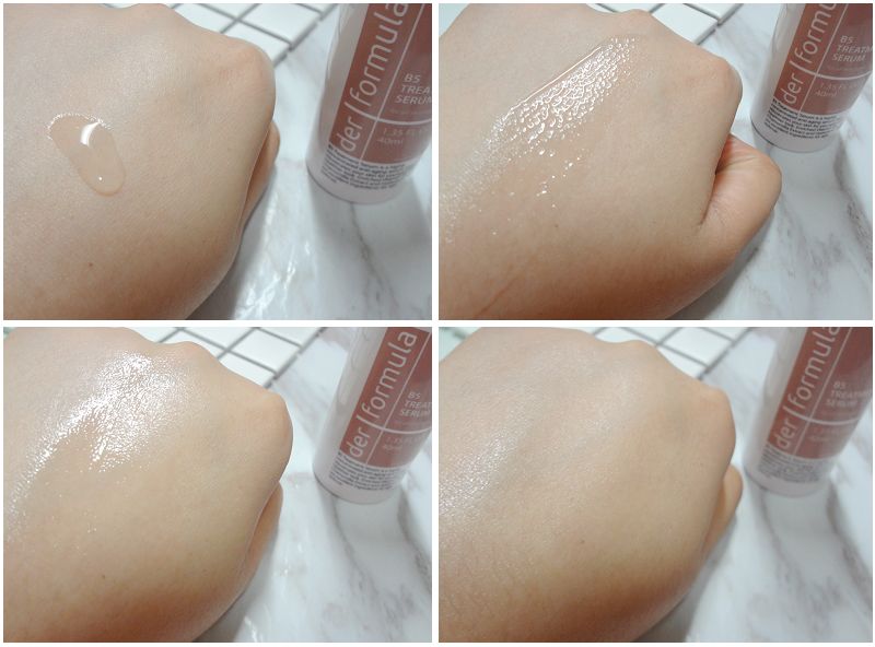 透明水狀的B5精華,滲透力極高,於肌膚上打圈按摩,不到數秒就能被肌膚完全吸收,感覺非常保濕,一點都不侷促黏稠。