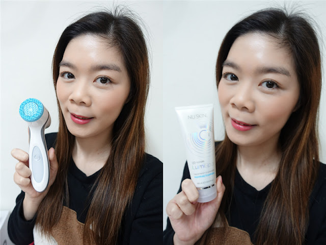 LumiSpa可以早晚使用,使用前先以溫水濕潤臉頰,再配合適量的淨膚露~