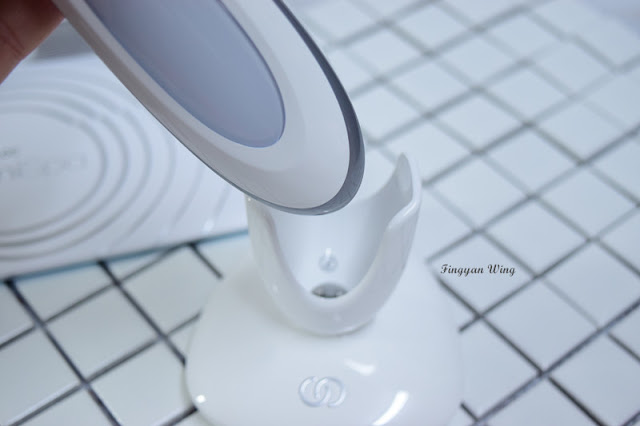 簡單易用,機身上就只有一個開關制,而LumiSpa護膚導頭跟市面上見到的大部份刷毛刷頭不同,它是採用矽膠製成的!