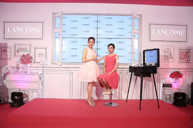 親自為在場模特兒塗上代表快樂自信的Lancôme Rose368 唇膏,即場將女性的快樂自信美傳遞出去。