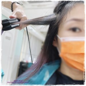輕輕吹乾我把瘦髮之後, 再用鈦金屬離子直髮夾把精華導入髮芯, 集中重組髮質結構改變蛋白質的排列, 修復受損的鱗狀表層, 讓水份及蛋白質補給每條髮絲, 重而讓髮絲得到持久的堅韌與健康