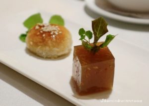 表層鬆脆可口的酥皮包裹著雲南金華火腿絲 配合淡淡玫瑰花香滲出