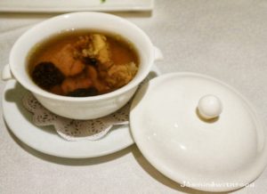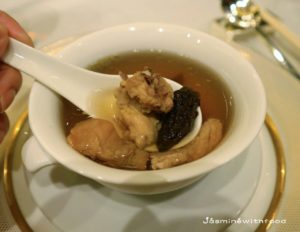 金黃的雞湯以嫩雞、羊肚菌、螺頭等材料慢火燉3小時