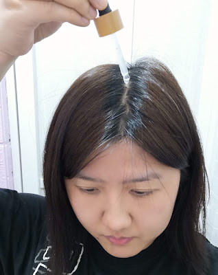 只需把1-2滴Hair Recipe生薑x蘋果頭皮精華在頭皮上,用指尖按摩,質地清爽唔笠,好快就吸收。
