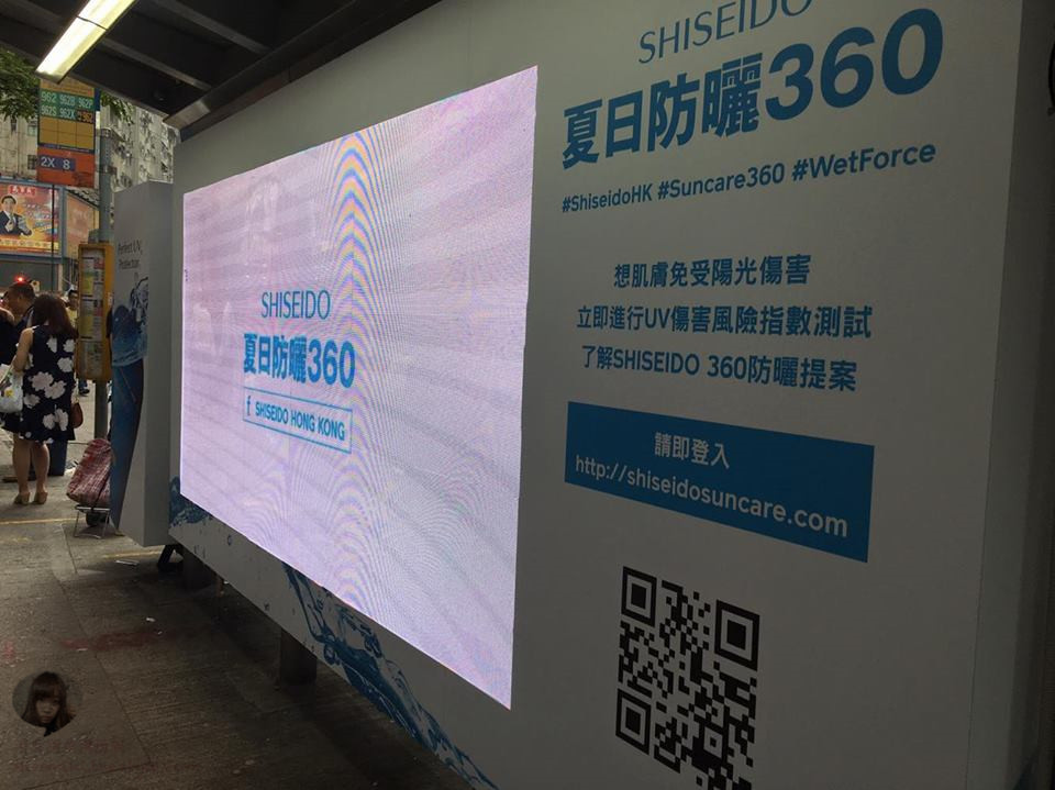 手持 SHISEIDO 的 POP,即場影張自拍,並上載 facebook,別忘了 hashtag #shiseidoHK #Suncare360 #WetForc