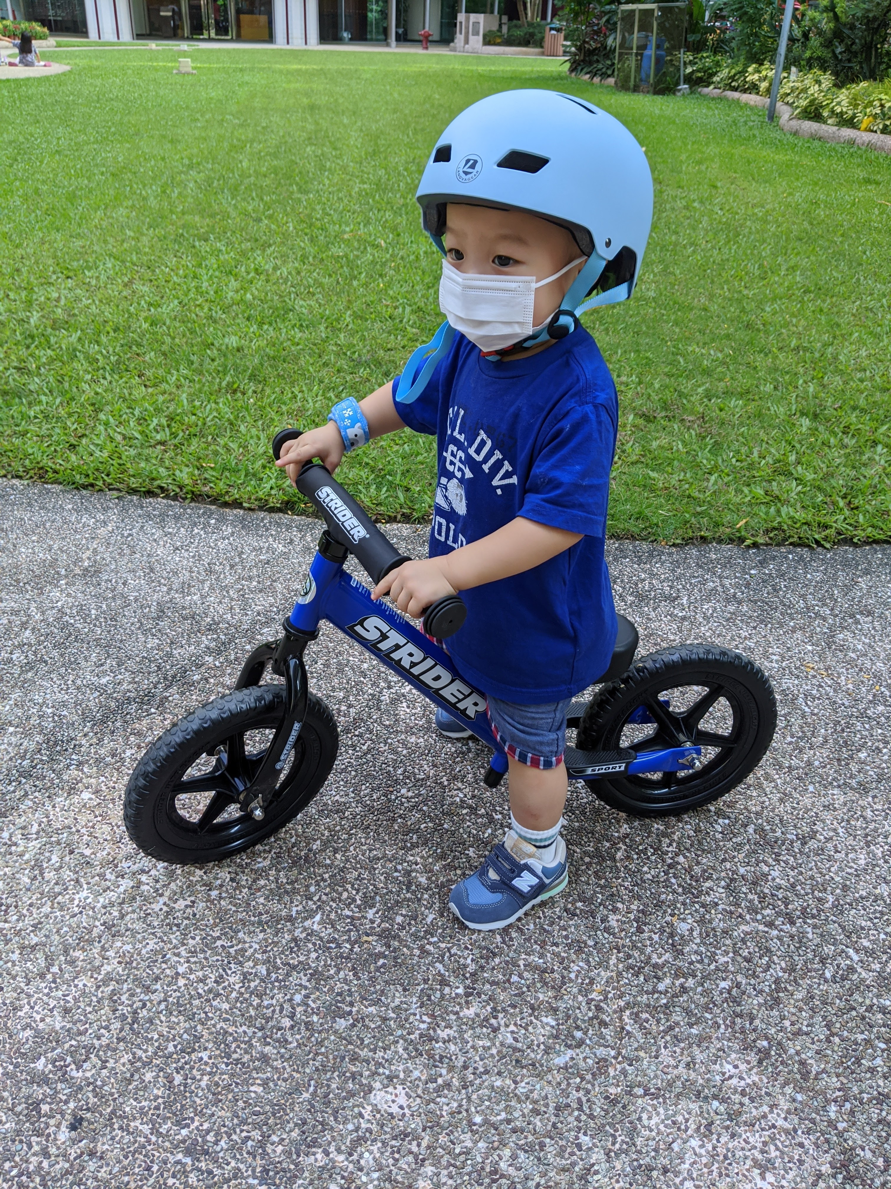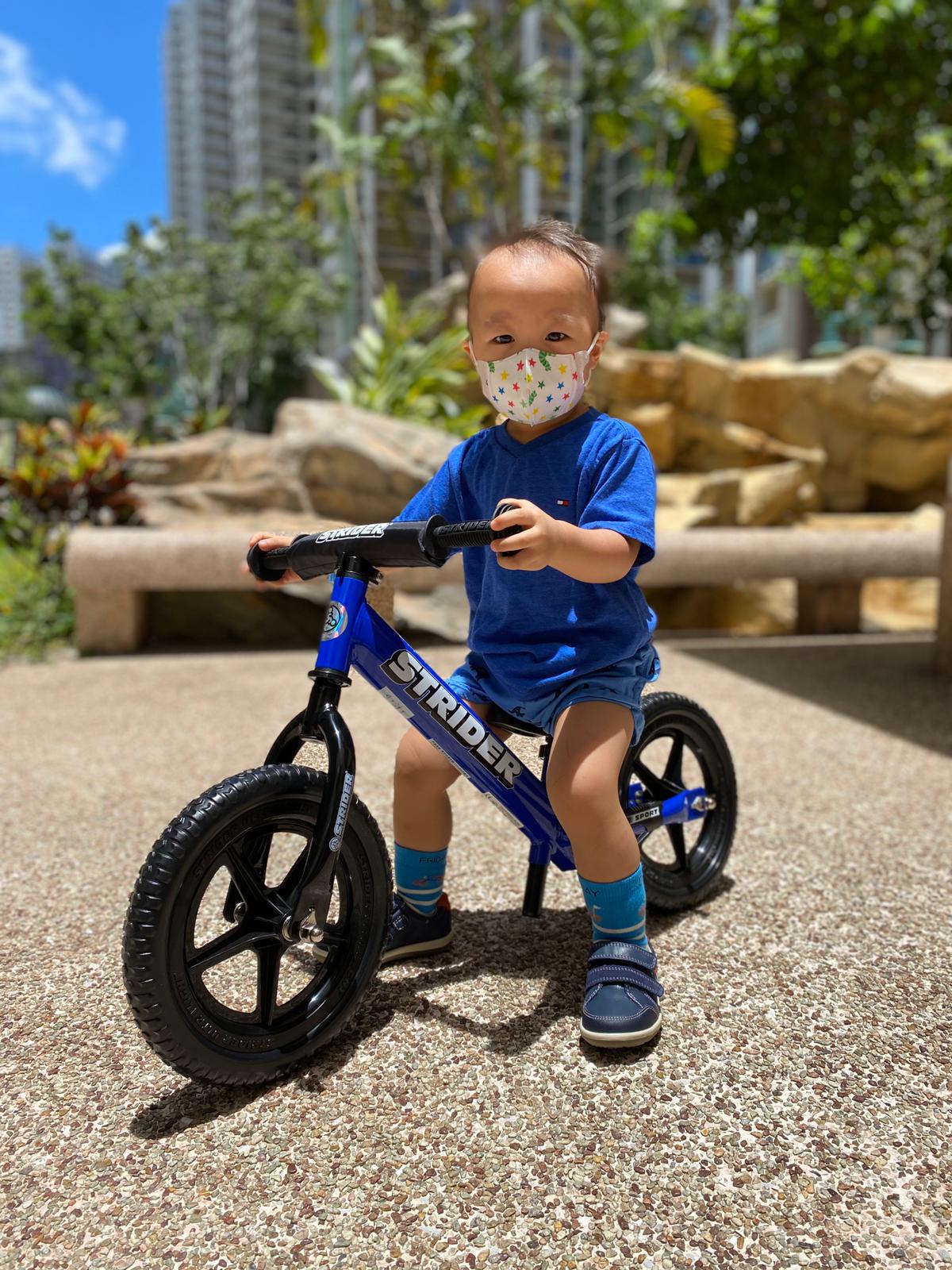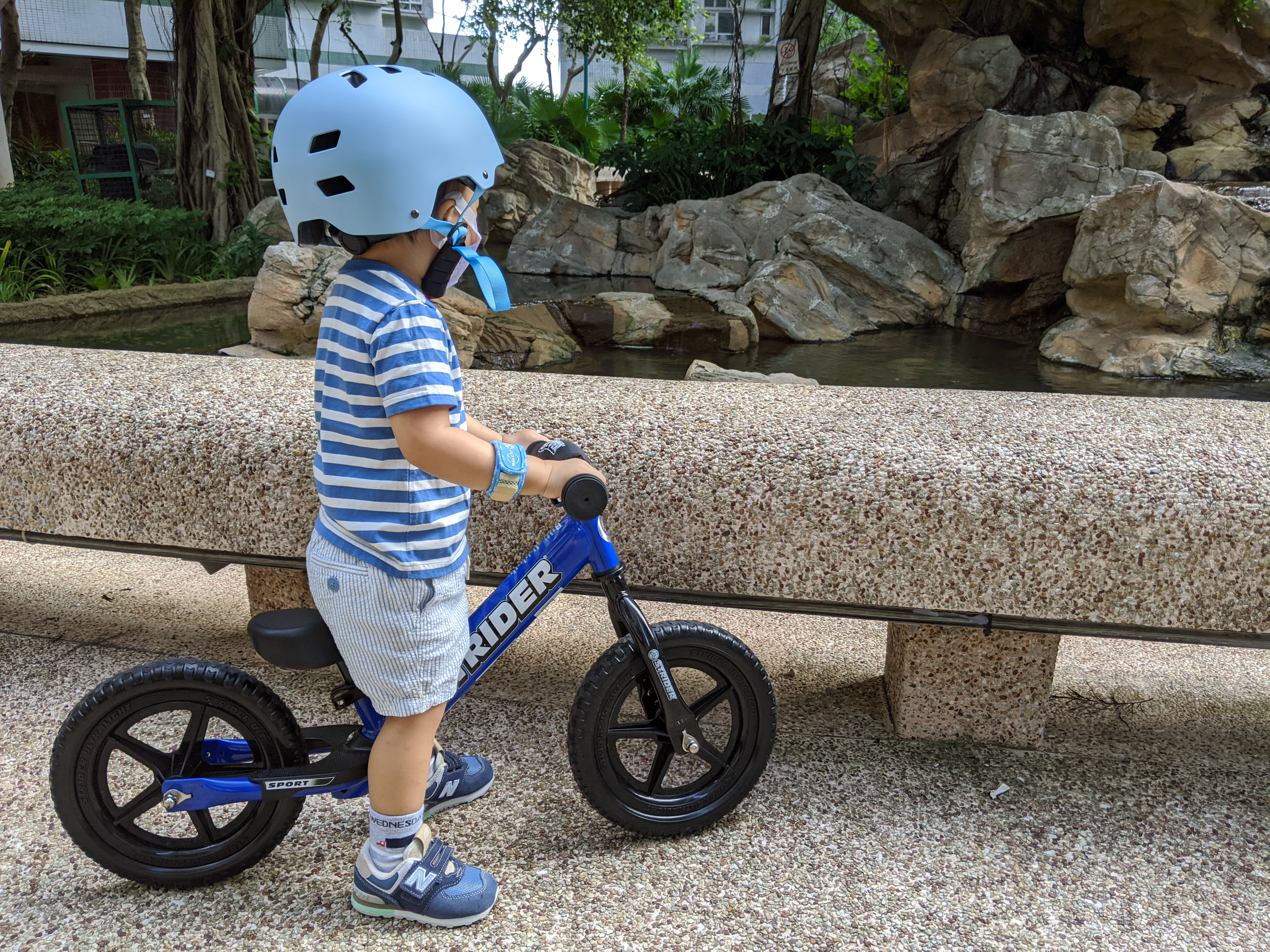 最後選定了STRIDER,雖然它算是中上價格的品牌,但它還是當選了。主要原因是它的車身相對其他品牌較短、而且輕 (sports版3kg, pro版2.3kg),而且座位最低位置較低,適合當時還是很矮的小子 (身高73cm以上就可以)。還有網上還有其他媽媽用家的評價也很不錯,耐用性高等等。然後它的輪胎可以改裝也是另一個特點,不過這不是我考慮的主要因素。