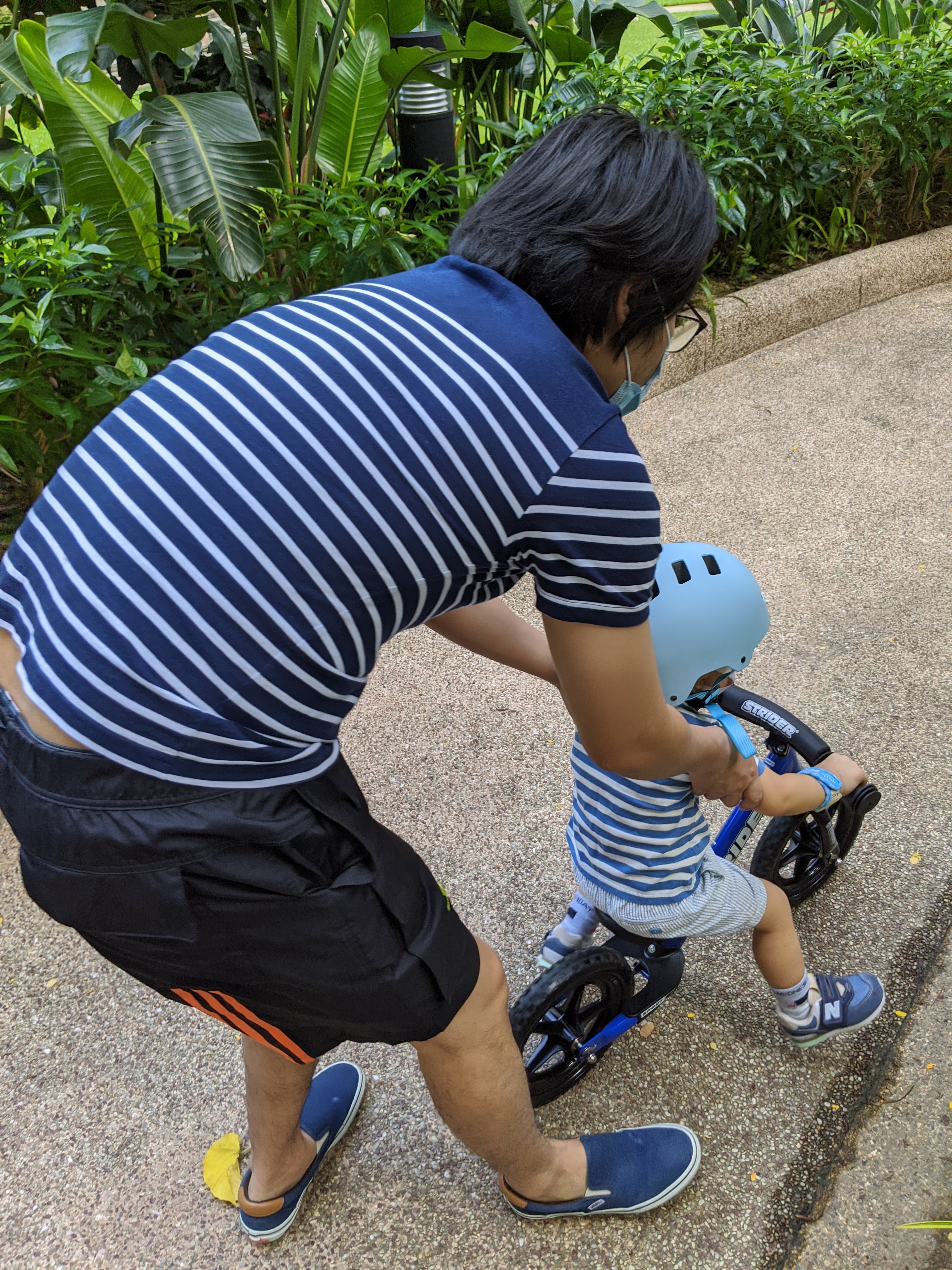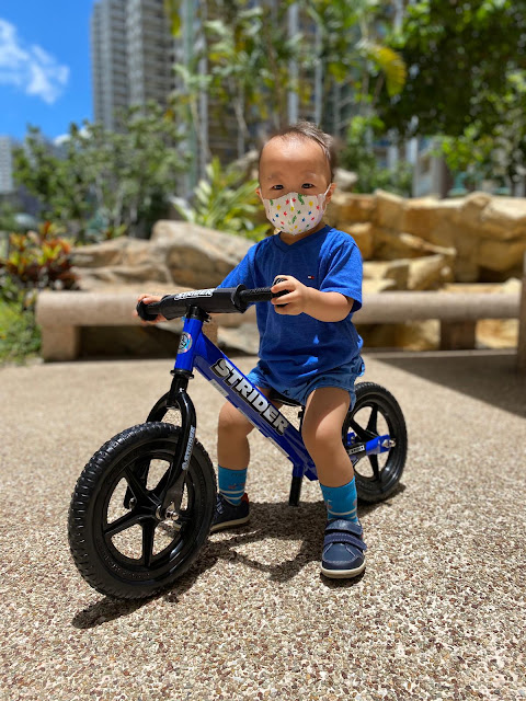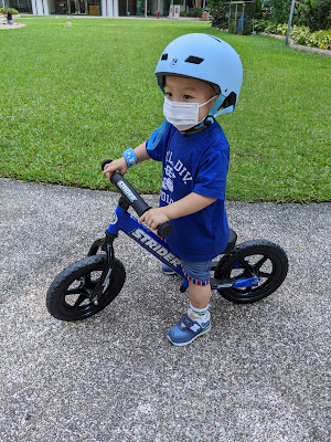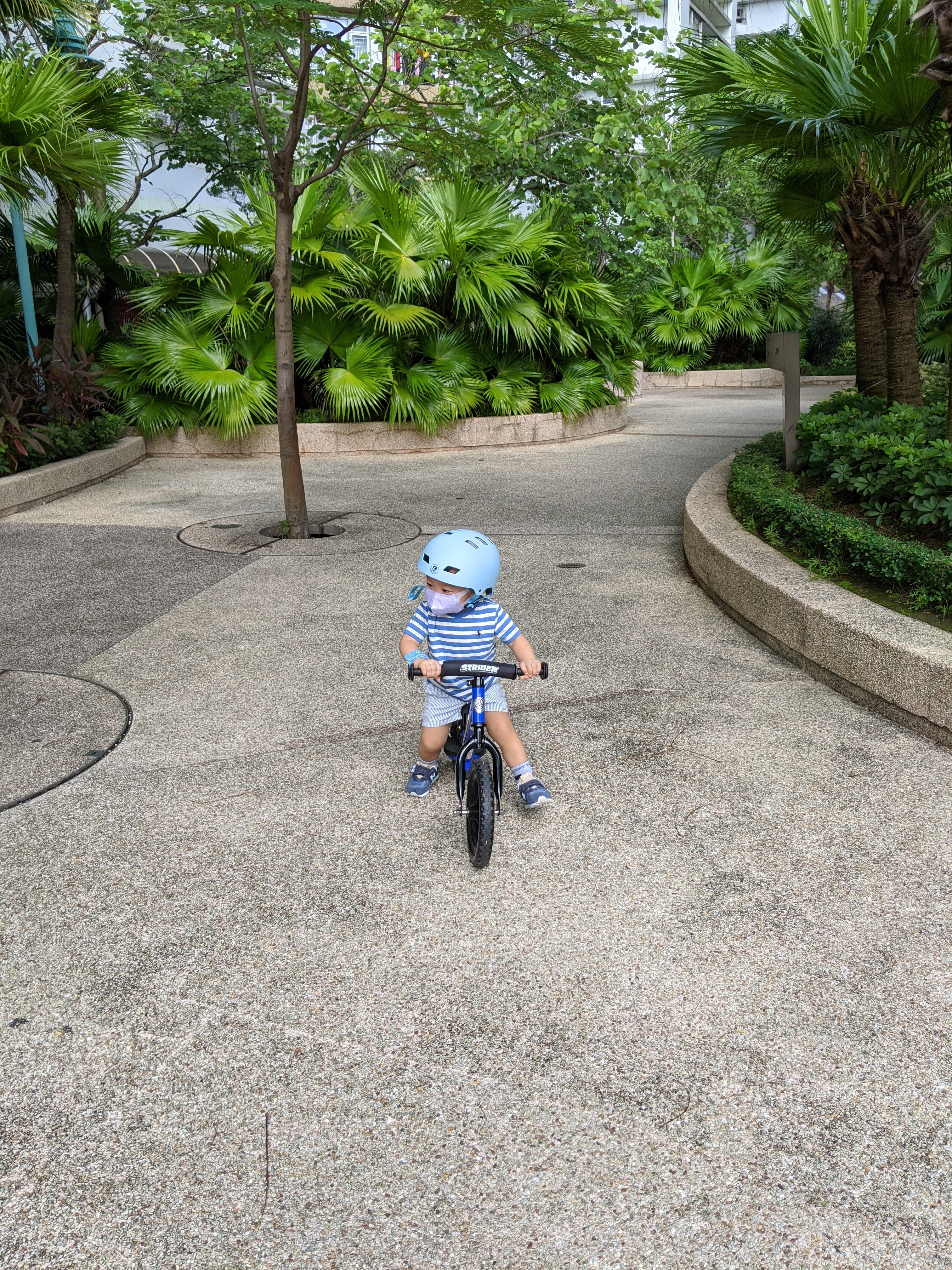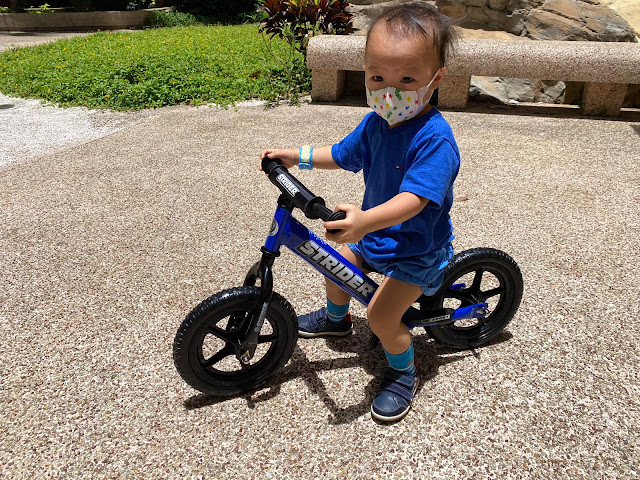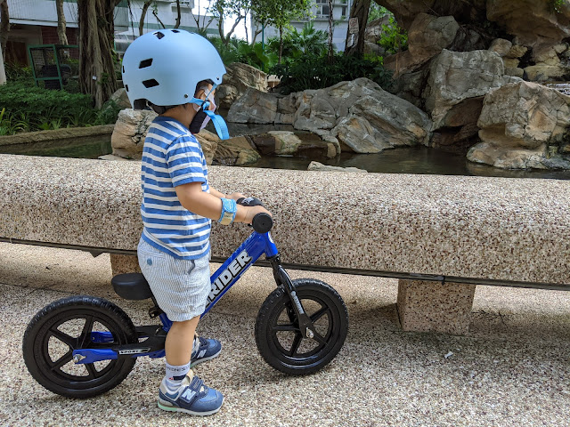 最後選定了STRIDER,雖然它算是中上價格的品牌,但它還是當選了。主要原因是它的車身相對其他品牌較短、而且輕 (sports版3kg, pro版2.3kg),而且座位最低位置較低,適合當時還是很矮的小子 (身高73cm以上就可以)。還有網上還有其他媽媽用家的評價也很不錯,耐用性高等等。然後它的輪胎可以改裝也是另一個特點,不過這不是我考慮的主要因素。