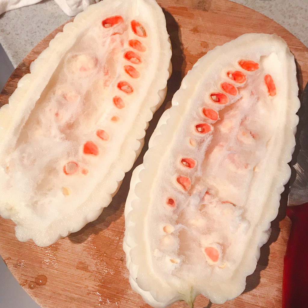 小編未試過切開白色苦瓜,估唔到入面嘅核係鮮橙色....