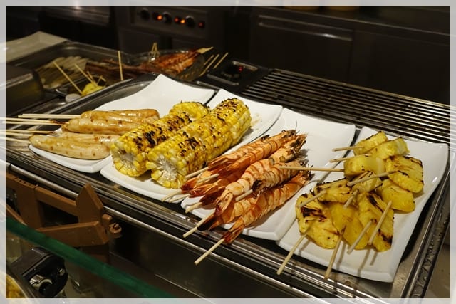 北角城市花園綠茵閣garden cafe推出『味遊。城中夜市』自助晚餐,除了有既定的豐富美食,在享用美食期間,餐廳還會不定時地輪流推出招牌菜式,記住聽到響鈴聲,就記得快快去排隊取食物啦!