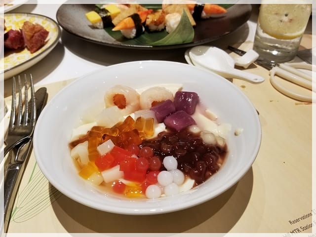 來到甜品啦﹗必食台灣芋圓啦﹗還有多款配料搭配,我就加在滑溜的熱豆腐花上,無得輸呀﹗