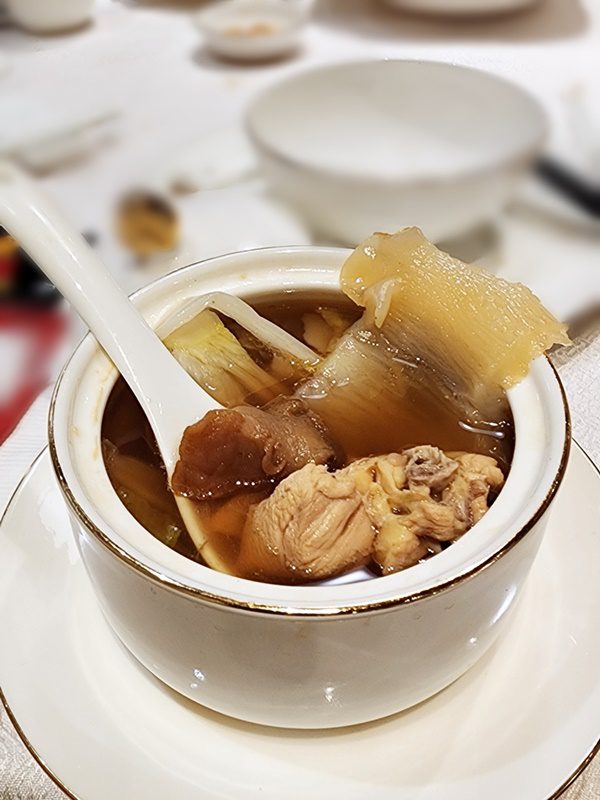 先來個花膠菜膽燉雞湯,菜膽的甜,加上像滴雞精一樣的精華所在,非常濃郁鮮甜又滋潤﹗