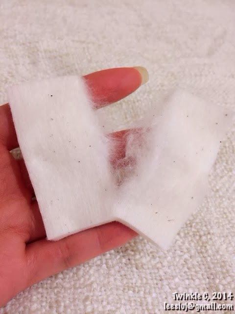 吸收了眼部卸妝水後,棉花的天然黑點會更明顯,唯一缺點,是化妝棉帶棉絮,多次擦拭後,會見到棉絮的出現,但為了保護肌膚,我會選擇天然一點的貼身用品。