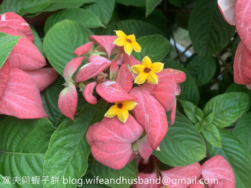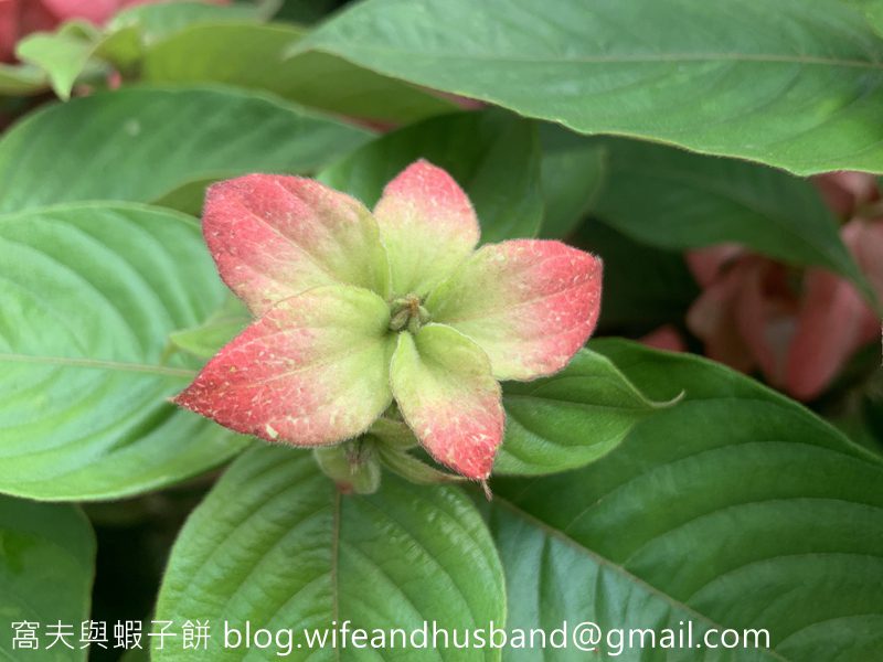 粉萼花的花瓣看來像葉子,尤其在還是青綠色的階段。拍完粉萼花,窩夫要躲進九龍城廣場避雨。