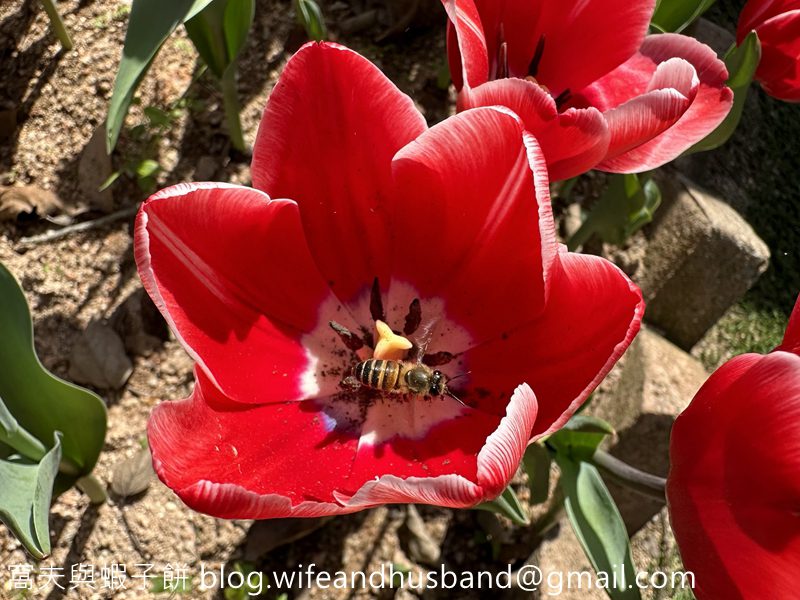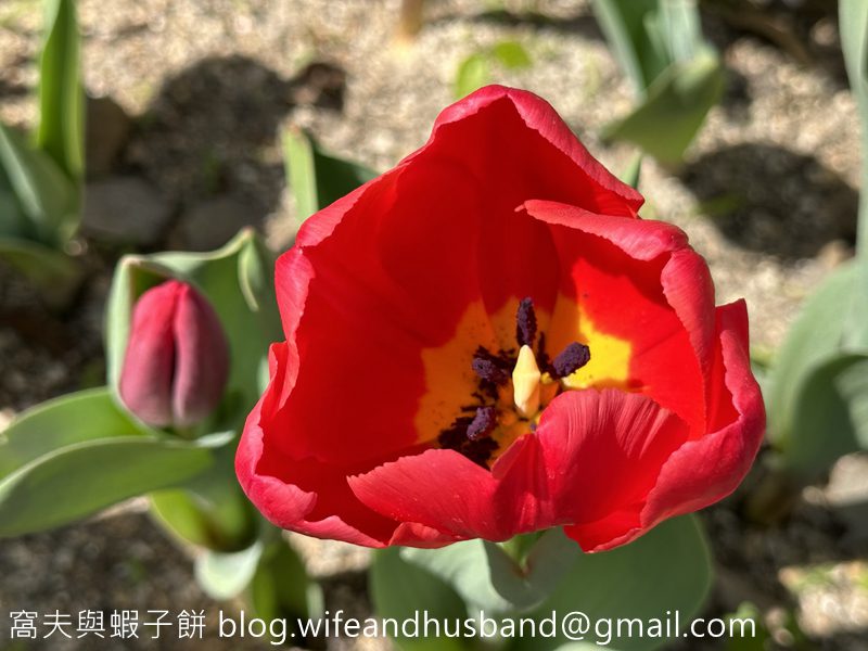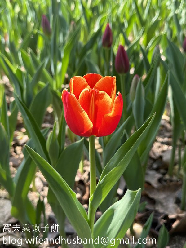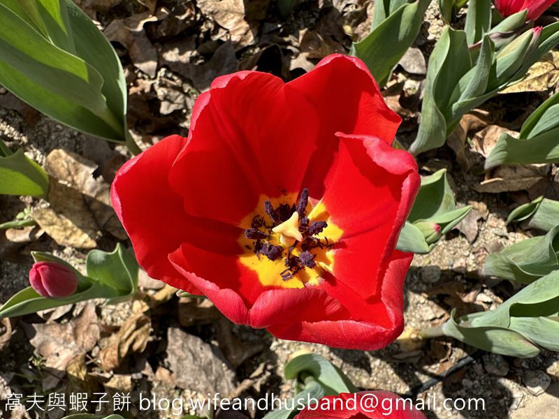 大紅鬱金香盛開中。