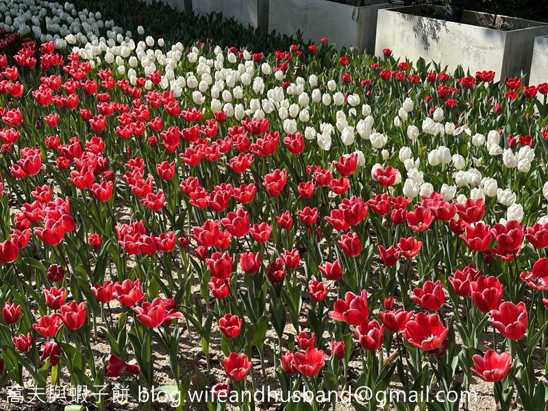 停車場對出的花圃以紅白兩色的鬱金香為主,部分還未開花。