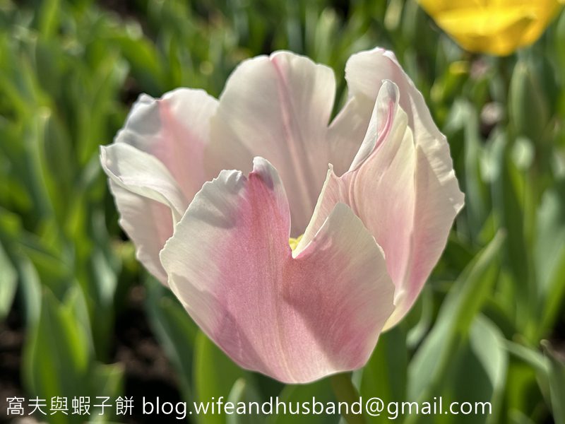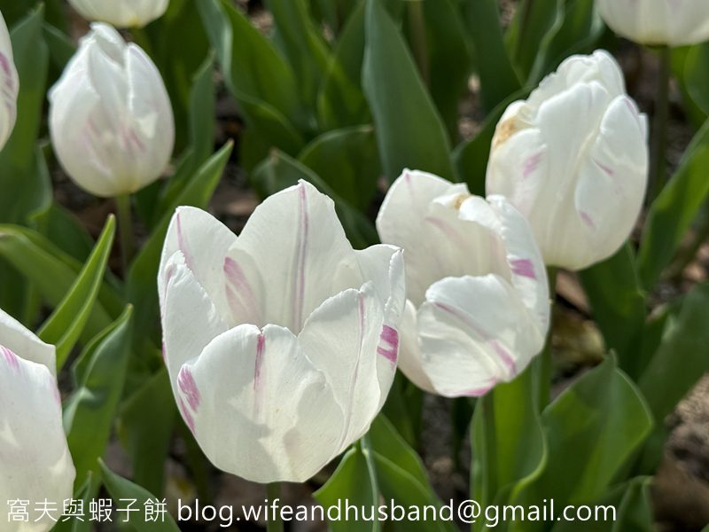 細看之下白色鬱金香並不是純白色的。