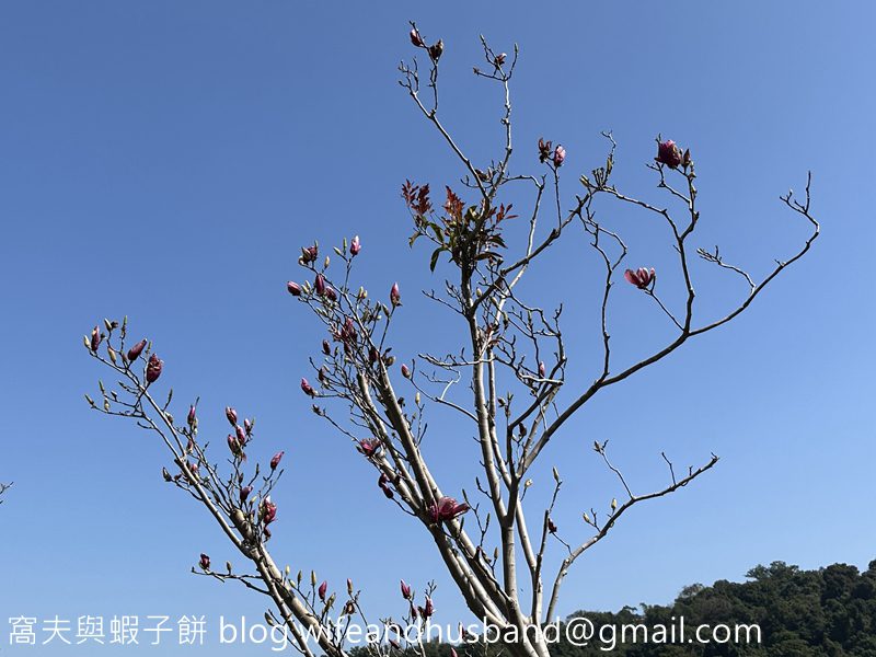走到湖邊,發現很多含苞待放的紫玉蘭。