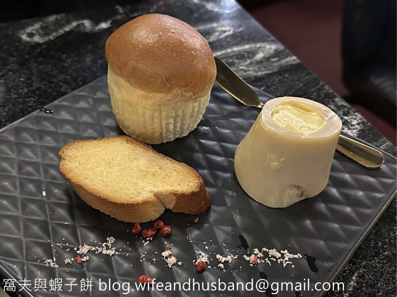 跟湯有香脆的法包和香軟的餐包,最特別是那放在牛骨內的香滑牛油。
