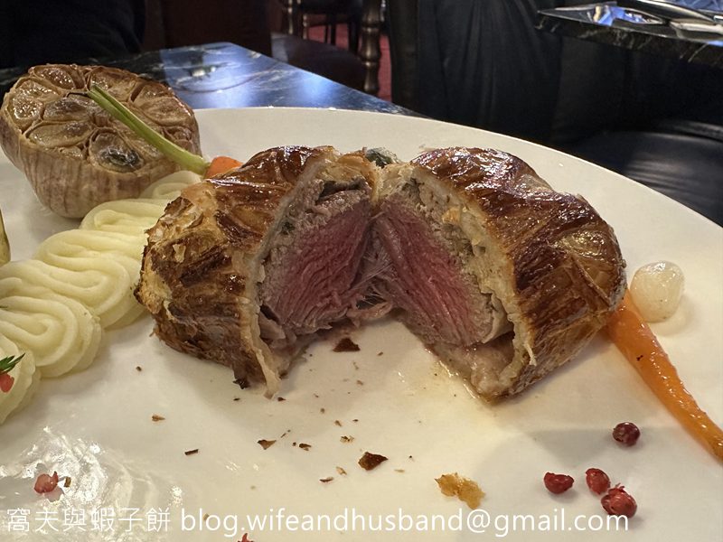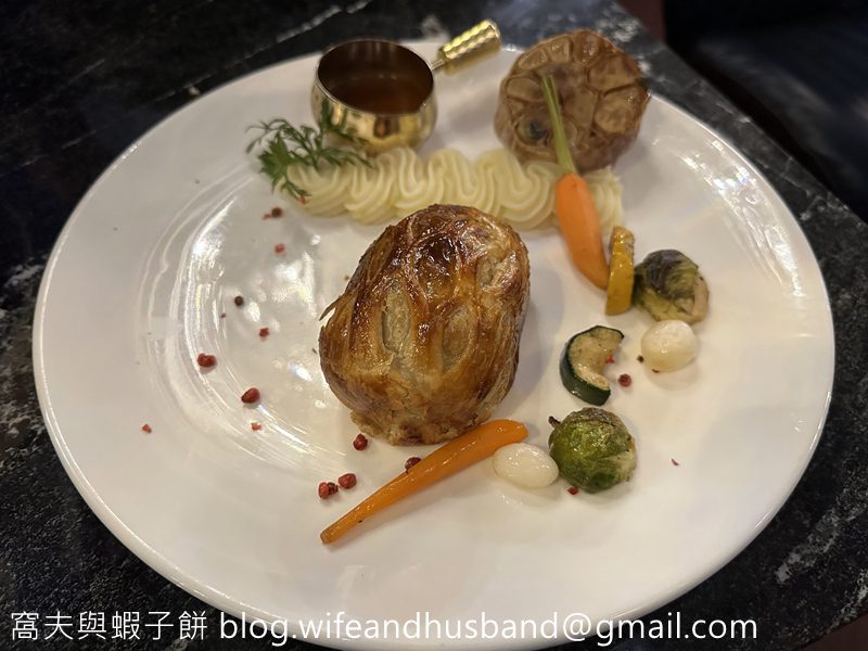輪到主菜,窩夫點了黑松露鵝肝醬威靈頓牛柳,擺盤明顯花過心思。