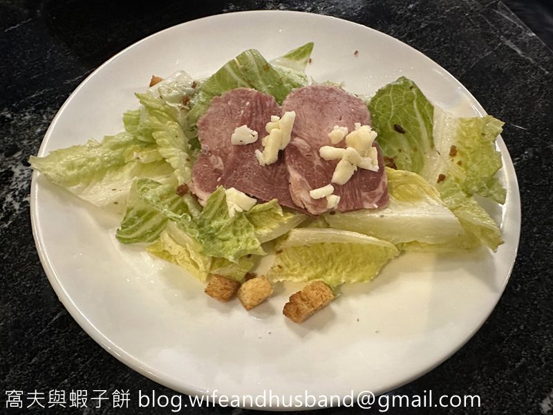 另一款前菜是低溫慢煮煙燻牛舌沙律,牛舌經低溫慢煮後口感軟腍,帶點鹹香,配生菜正好中和鹹味。