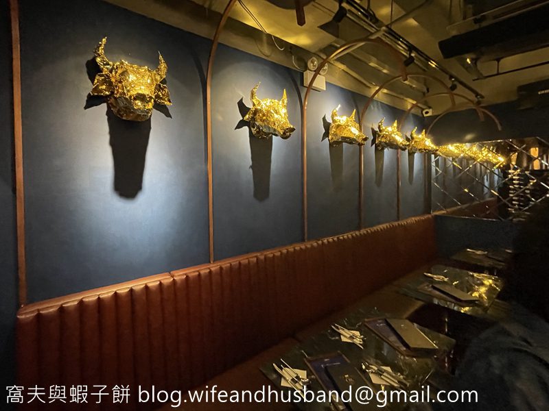 走進餐廳,牆上的金色牛頭裝飾太吸睛了。