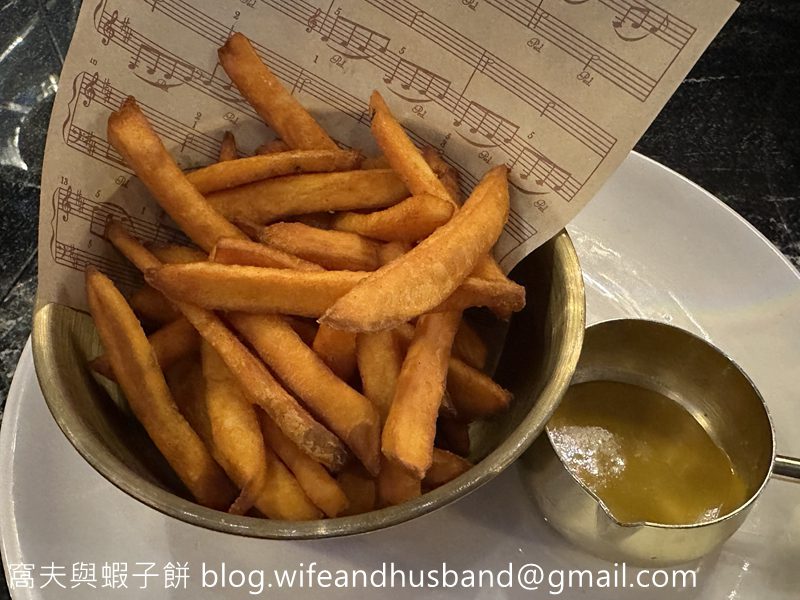 配菜有番薯條配蜜糖芥末醬,份量十足,一點也不油膩。