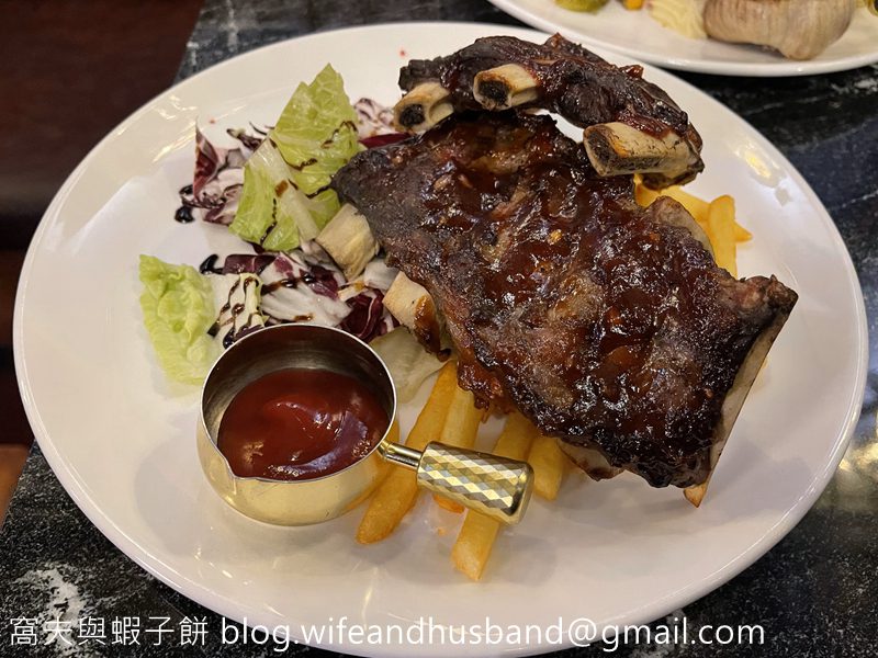 蝦子餅點了烤珍稀黑安格斯牛肋骨,烤豬肋骨吃得多,烤牛肋骨還是第一次,牛肋骨有兩大件,牛味濃郁,肉質夠嫩,值得一試。牛肋骨下面的薯條亦很有水準。