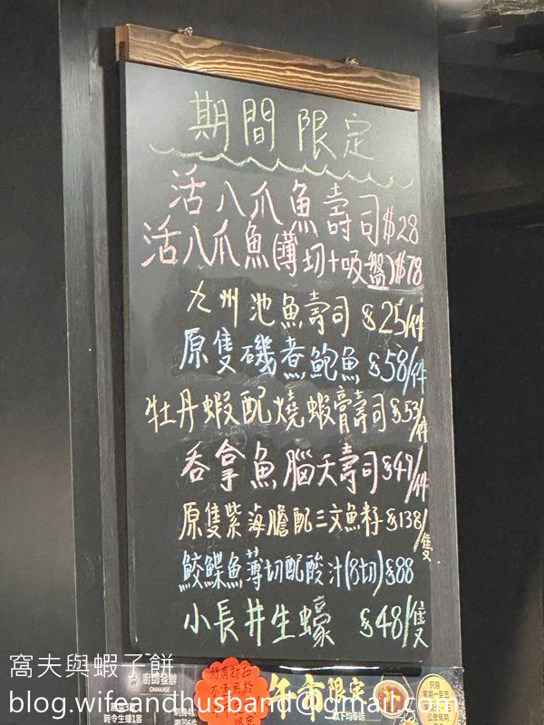 黑板上的「期間限定」都很吸引,吞拿魚腦天壽司以外,窩夫還點了另外兩款。