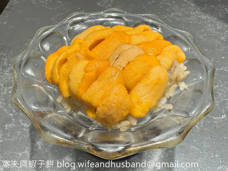吃過海膽飯,窩夫不想點太多壽司,精挑細選了兩件,第一件是瀨尿蝦配蟹膏櫻花蝦壽司($25),味道豐富有層次,驚喜之作。