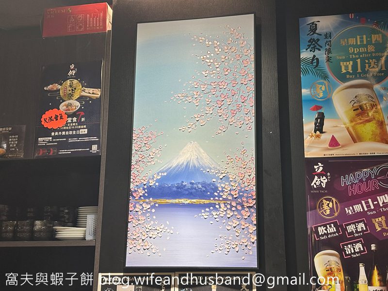 離座前發現牆上那「櫻花下的富士山」太美,忍不住要拍下來。