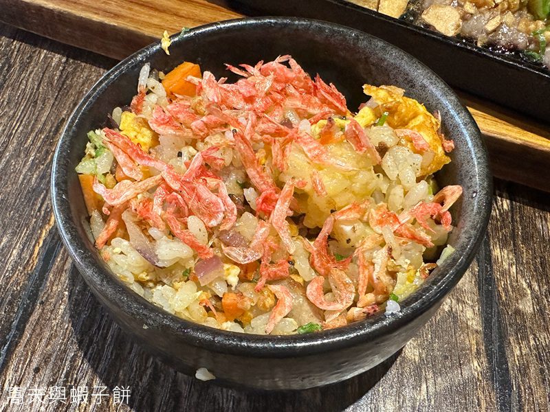 三文魚炒飯以櫻花蝦點綴,賣相加分,炒飯入面有三文魚粒、雞蛋、甘筍和紫洋蔥等,十分豐富。