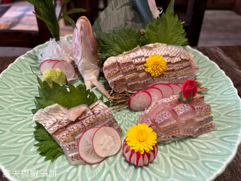 另外點了金線鯛刺身($588),魚如其名,身上好像繡了金線,魚肉新鮮透光,口感柔軟。